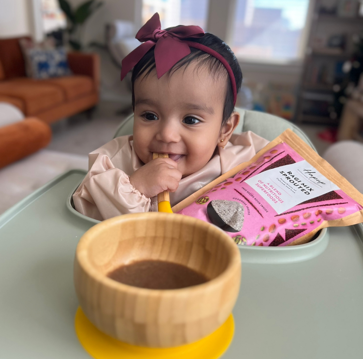 Thankfully, my father-in-law, late Dr. P. Sudershan Reddy, came to our rescue like the super grandad that he was. He introduced us to our ancient superfoods- millets and spoke scientifically about why these should be introduced as first foods and be a part of our daily lives. After getting further convinced with google gyaan, I was ready to feed my child these magical millets but was surprised to discover how difficult it was to source all the grains, how tedious it was to process it (to actually make it bioavailable) and then finally get to the joy of making and feeding it to my child. Commercially, there were very limited options, and trust was an issue.